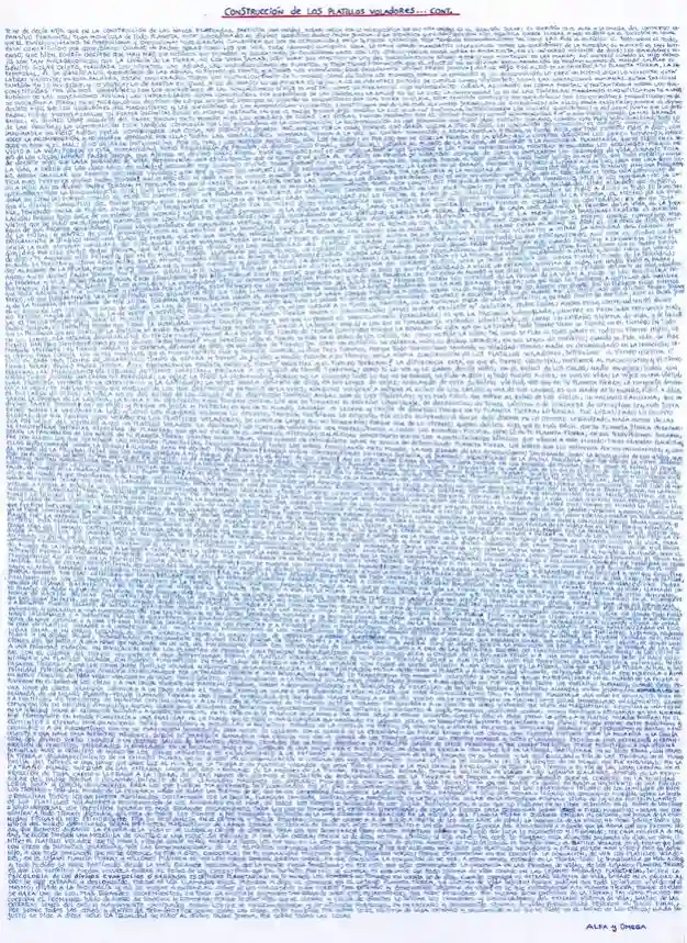 y todos lloran; lo que ves hijo, pronto ocurrirá; porque el tiempo de la prueba de la vida, llega a su fín; toda prueba, sea ésta individual ó planetaria, tiene su principio de partida y su fín ó término; es el Alfa y la Omega de toda causa viviente pedida en el Reino de los Cielos; el mundo debió saber esto; porque el mundo lo pidió; y si el mundo lo ignoró, el mundo también será ignorado, en la Nueva Era que se avecina sobre este mundo; entre los acontecimientos que vienen, está la resurrección de toda carne; vegetal y animal; flores, plantas y carne de toda especie; y habrá dos mundos en uno; los de carne eterna y los de carne perecible ó carne mortal; el llorar y crujir de dientes, estará en los de carne mortal; estará en todos aquéllos, que fueron influenciados por el extraño sistema de vida, llamado capitalismo; porque todos mentalmente fueron divididos; tales seres conocieron lo que jamás nunca debieron haber conocido; porque basta conocer y ya se tiene compromiso con el divino juicio final; Así lo veo divino Padre Jehova; veo en la television solar, que más llora el llamado occidente, surgido en la prueba de la vida; Así es hijo; porque mientras mayor fué la extraña influencia del oro sobre el espíritu, más alejado esta el espíritu, del Reino de los Cielos; y mayor es su sentimentalismo de culpabilidad, mayor fué la extraña ilusión y el dormir del espíritu; esta extraña ilusión y extraño dormir, nadie lo pidió en el Reino de los Cielos; porque nadie pide, lo que con el correr del tiempo, le impedirá el volver a entrar al Reino de los Cielos; he aquí hijo la extraña obra del llamado capitalismo; la extraña obra de dividir por medio del egoísmo, a otros; he aquí hijo a satanás en la prueba de la vida; el demonio tomó la forma de extraño sistema de vida, para dividir a todos; los que cayeron bajo su influencia, se olvidaron e ignoraron, que la advertencia de este peligro, estaba y aún está en el divino evangelio del Padre Jehova: Sólo satanás divide y se divide así mismo; es decir, que el llamado capitalismo, desaparece dividiéndose; su desaparecimiento de la evolución humana, se cumple con su misma ley; con la misma vara conque midió al mundo de la prueba, será el capitalismo medido; tal como él obró, obrarán con él; así como el capitalismo a otros empobreció, así también será empobrecido; así como a otros aisló ó bloqueó, así el capitalismo será aislado ó bloqueado; el Tercer Mundo, Mundo de la Trinidad, aislará a la bestia explotadora; y sobre ella caerá la más grande pobreza y ruina, que la mente humana pueda imaginar; los llamados ricos ó millonarios, tendrán que mendigar su propio alimento; muchos se suicidarán, creyendo escapar, a lo que ellos mismos pidieron en el Reino de los Cielos; vano intento hijo; porque si mil veces se suicidan, mil veces vuelven a ser resucitados por el Hijo Primogénito; Así lo veo en la television solar divino Padre Jehova; ¡como se mueven los cementerios del mundo! ¡como se desmaya la gente, ante tan sublime y grandioso espectáculo! y veo que resucitan también, seres de épocas remotísimas, desconocidas para el mundo; Así es hijo; el divino juicio final, abarca a toda la historia de la Tierra; desde cuando ésta tenía el microscópico porte de una cabecita de alfiler, hasta su actual tamaño; ¡veo criaturas microscópicas y gigantes! Así es hijo; el libre albedrío geométrico en toda carne, lo pide el propio espíritu, cuando decide conocer alguna forma de vida; ¿divino Padre Jehova, quiénes son esas criaturas, que tanto brillan? Son hijo, las primeras dinastías faraónicas, que nadie a conocido; estas criaturas galácticas, son las culpables del extraño sistema de vida, llamado capitalismo; ellas son los padres del materialismo de la Tierra; de estas criaturas faraónicas, salió el mal que se enseñoreó por toda la Tierra; hasta Adán y Eva, fueron contagiados por estos demonios, venidos de lejanas galaxias; porque te he de decir hijo, que la serpiente que tentó a Eva, es la misma serpiente faraónica; ya te contaré y te mostraré en la television solar, lo sucedido en el microscopico Paraíso de Adán y Eva; Así sea divino Padre Jehova; hágase tu divina voluntad; Veamos lo que sucede en el platillo volador; ¿qué ves hijo? es tanto lo que veo, divino Padre Jehova, que no terminaría nunca de hacerte divinas preguntas; Así es hijito; la eternidad al definirse, no muestra límite alguno; el límite lo pidió la humanidad, porque desconocía tal sensación; escribe hijo la siguiente ecuación, que explicará en parte, lo que tú vienes viendo desde niño: Un Platillo Volador = a una creación mental-solar = a una forma de materia, que posee su propio libre albedrío expresivo = a un lugar en donde todo habla = a infinitos fuegos solares, de infinitas jerarquías solares = una geometría en que las microscópicas moléculas solares deciden su propia forma física = a infinitos libres albedríos provenientes de sus propios universos y galaxias = una materialización con participación de infinitas jerarquías solares = un instante eterno, que dará lugar a universos que jamás cesarán de expandirse = a sucesión eterna de otras naves celestiales = a infinitas clases de querubínes con grados galácticos infinitos = a un divino mandato celestial, en la jerarquía correspondiente = individualidades solares materializadas en filosofía de nave celeste = a una eterna herencia paralela a la de los planetas = a futuros juicios y revelaciones, en desconocidas y remotas regiones del cosmos = uno de los infinitos lugares, en donde se crea un platillo volador = a universos de lo instantáneo, microcosmos de los macrocosmos de jerarquías eternas de tiempo = una nave que se sumará a otras infinitas, que fueron creadas en el mismo lugar solar, y en otros lugares, de igual jerarquía s