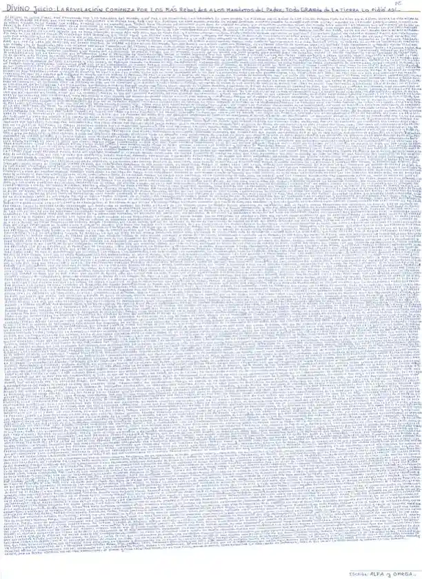 hicieron lo opuesto; dudaron de la Revelación; sabiendo aún que venía de un hijo humilde por su condición; mi hijo les dijo que era telepático; que su telepatía es permanente; y no creyeron; vieron el colosal trabajo de la Escritura Telepática, y no creyeron; les dijo que sus nombres saldrían en los Rollos; y no le creyeron; muchos le vieron escribir por muchos años, y no le creyeron; he aquí la roca de las Escrituras; he aquí el egoísmo humano; duro como la roca; he aquí el fruto de vuestro sistema de vida; he aquí a los ilusionados del mundo; he aquí a la soberbia viviente; he aquí a los primeros del llorar y crujir de dientes; he aquí a los ciegos del mundo; he aquí los que atrasaron por años, la llegada de la verdad al mundo; he aquí a los que hicieron más dolorosa, la tragedia de este mundo; porque cada segundo de atraso, equivale a una existencia que debe cumplirse fuera del Reino de los Cielos; la llegada de la Revelación a los mundos, pone fín a los segundos de vida, en que se venía violando la ley; el atrasar la verdad por puro egoísmo, prolonga los segundos de violación; porque toda promesa hecha en el Reino de los Cielos, se cumple en el mismo instante pedido; si ocurre lo contrario, se paga las consecuencias; de verdad os digo que todos los que despreciaron la Escritura Telepática del Cordero de Dios, no entrarán al Reino de los Cielos; mientras más segundos de violación a la ley del Padre se tiene, mayor es la eternidad de tiempo que el espíritu permanece fuera del Reino de los Cielos; de verdad os digo, que todo egoísta llorará; porque deberá calcular todos los segundos que tuvo de egoísmo en la vida; por cada segundo de egoísmo vivido, es una existencia que deberá cumplir fuera del Reino de los Cielos; y toda falta ó pecado, sea cual fuere, se mide, se calcula por el número de segundos; y aún menos del segundo; es así que si una criatura tuvo vicio toda la vida, deberá sumar los segundos que contiene su existencia; por ejemplo: Si un fumador vivió tal vicio por un millón de segundos en su vida, es un millón de existencias, que deberá cumplir fuera del Reino de los Cielos; y si fumó en presencia de la inocencia de los niños, debe multiplicar su total por tres: Es decir que serían tres millones de existencias que deberá cumplir fuera del Reino de los Cielos; de verdad os digo, que ningún vicioso entrará al Reino de los Cielos; es más fácil que entre al Reino, uno que no conoció el vicio, a uno que lo conoció; nadie nació fumando; todos nacieron bebiendo leche; todo vicio es demoníaco; porque ningún vicioso entra al Reino; es inmoralidad viviente; de verdad os digo, que todo lo que hicísteis y pensásteis en la vida, todo tiene su medida en la justicia del Padre; de verdad os digo, que la mayor violación que existe, es la de no haber estudiado toda la vida al Padre; Él es el primero entre todas las cosas; de las que hubieron, hay y habrán; y de verdad os digo, que todo aquél ó aquélla que se dijo cristiano, y no se supo de memoria mis Escrituras, son falsos profetas de mi Palabra; y veo que el cristianismo está lleno de ellos; ningún falso profeta entrará al Reino de los Cielos; es más fácil que entre al Reino, uno que no fué cristiano pero que fué sincero con el Padre; a que puedan entrar, los que son cristianos de boca; y nó cristianos por ilustración; y todos pedísteis al Padre, ilustraros para buscar al Padre; es por eso, que vuestro Padre Jehova, permitió que las Escrituras se multiplicaran por todo el planeta; en todas las naciones y en todos los idiomas; no lo permití porque habían religiones; porque las llamadas religiones, no son del Padre; son obras de hombres; de verdad os digo, que las llamadas religiones, son desconocidas en el Reino de los Cielos; y toda filosofía que divida a sus semejantes; muy pronto las llamadas religiones pasarán al olvido; es una de las tantas filosofías de prueba, que pidió el mundo materialista; el mundo de la prueba ó mundo Alfa, caerá en su totalidad, incluyendo lo que llamáis religiones; más, mi Palabra es eterna; mis Escrituras seguirán siendo la luz del mundo; hasta el fín de este planeta; las Escrituras del Padre, tomarán un nuevo concepto; un concepto más galáctico; un concepto que pone a esta humanidad, en más contacto con el universo; es el Mundo Omega; un mundo que estáis lejos de imaginarlo; un mundo de niños genios; un mundo que tendrá filosofía de paraíso; un mundo encabezado por mi Hijo Primogénito; un mundo donde el prodigio será cosa normal; un mundo que verá por sus propios ojos, lo que es el universo viviente del Padre Jehova; un mundo que eclipsará vuestras maravillas terrenales; un mundo que obedecerá a una mente de Primogénito Solar; un mundo, con el cual muchos justos soñaron; un mundo que os recordará como el mundo de las tinieblas; porque ninguno de vosotros que fuísteis divididos, entrará al Reino de los Cielos; un mundo que sabrá de vosotros, mejor y más de lo que vosotros sabéis de sí mismos; un mundo en que no habrán ni ricos ni pobres; un mundo que no conocerá al mayor ilusionador: El dinero; un mundo que no conocerá la corrupción; un mundo con carne eterna; he aquí la diferencia entre vosotros y el mundo del futuro; de verdad os digo, que bién pudísteis ser también de ese mundo; más, fuísteis engañados y divididos; ningún dividido en espíritu y mente, vé la Gloria del Padre; y la Gloria del Padre, se expresa en infinitas formas; no tiene ni principio ni fín; el mundo Omega y sus maravillas, es una de sus divinas glorias; de verdad os digo, que este mundo Omega, se inicia el año 2001, con la resurrección de toda carne; un divino premio, en que pocos creyeron; los que no creyeron, no serán resucitados ó transformados a niños; es un premio sólo para los que creyeron; los que no creyeron, no tienen mérito para cobrar un premio, en el que no creyeron; llorar y crujir de dientes, en