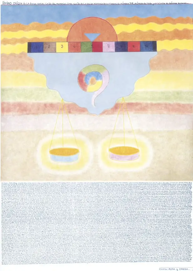 Sí hijito; este dibujo celeste demuestra que la Vara conque mides, es la misma conque serás medido; la Vara son los Diez Mandamientos; y no podía ser de otra manera; los divinos Mandamientos son salidos de la Palabra viviente del divino Padre; de la misma divina fuente, de donde salieron y aún salen los universos; de donde salió la materia y el espíritu; y que aún siguen expandiéndose; todo planeta nace con su divina Vara; nace con su futura Sagrada Escritura; nadie es desheredado; la Vara del dibujo celeste está dividida en diez partes; cada parte corresponde a una parte del pensar humano; y se puede traducir así: Lo mío y lo que corresponde a los otros; lo mío debe ser igual, a lo de los otros; pues los divinos Mandamientos enseñan la igualdad; esta igualdad no se ha hecho en el mundo; pues todos los espíritus son probados en sus respectivas filosofías; toda prueba requiere de tiempo; y todo tiempo requiere otro tiempo; que es el tiempo en que son juzjados los que fueron probados; todo espíritu humano pidió lo que en la vida le tocó experimentar; todo es promesa; nada es juramento; el juramento es una filosofía demoníaca; se jura en los mundos donde hay desconfianza; donde exsiste la confianza, es desconocido el juramento; el juramento que se usa en la Tierra, es producto de una injusticia dentro de una justicia; la cual es también probada por la divina Vara; la Vara representa la medida justa que cada cual se ha hecho acreedor; según el uso que hizo de sus ideas; es espíritual; y repercute en lo material; la divina ecuación de la divina Vara es la siguiente: Divina Vara = a medida en los pensamientos humanos = una proporción de cantidad, según conciencia; = una medida de diez números dividido por uno; = un divino libre albedrío ó centro medio = cinco numeral en el uno; = una Justicia divina en el Padre; = mitad arriba, mitad abajo; = una nueva proporción de las cosas; quien traspase la mitad de la Vara, traspasa al Padre; es decir viola la ley de la posesión; del centro medio que es el cinco hacia la izquierda, son los humildes del Señor; del centro medio que es el cinco hacia la derecha, son los mundanos ambiciosos; son los que poseen más; sin haberles importado la Moral viviente de mis divinos Mandamientos; escrito fué: Que se cuide la izquierda de lo que hace la derecha; quiere decir: Que se cuiden mis humildes, de la inmoralidad de los ricos; todo rico prefirió servir al señor del oro; y todo humilde al señor del trabajo; escrito fué: No se puede servir a dos señores; ó se sirve al César que es el oro, o se sirve a Dios que es el trabajo; hay muchas clases de riquezas; y muchas maneras de hacerse rico; más, la más despreciable para el divino Creador, es aquella que en su ambición, explota a sus propios semejantes; y quien explota a uno de mis hijos, al divino Padre explota; pues estoy en la mente de todo explotado; han transcurrido muchos siglos desde el instante en que el Creador dió a conocer al mundo, sus divinos Mandamientos; todos los siglos transcurridos, son un divino instante para el Padre Eterno; un segundo celeste equivale a un siglo terrestre; todos los momentos históricos del planeta, acaban de ocurrír en el Reino de los Cielos; allí el instante abarca los siglos de la Tierra; es la prueba terrenal mirada desde lo alto; los tiempos de los planetas tienen su límite; fuera de sus propios límites; límites en su propia unidad de tiempo; el supremo límite de todo tiempo, es cuando se aproxima su justicia; el tiempo siente como sienten los espíritus; escrito fué que mi Universo es viviente; en la materia y en el espíritu; el tiempo también es juzjado por la divina Vara; toda acción humana lleva tiempo; hasta las ideas que no se materializan, hacen uso de tiempo; en la Justicia divina, todo espíritu humano debe tomar en cuenta lo siguiente: Los segundos; los gramos; las moléculas; la intención de sus ideas; todo lo que sea proporción y que el espíritu tuvo interés en ello; todo interés humano, no debe ni debió jamás, haber traspasado el cinco de la Vara; no debió haber atropellado su centro medio; pues con ello atropella un libre albedrío; atropella el libre albedrío de los Mandamientos vivientes; según sea la interpretación que cada espíritu dió a mis divinos Mandamientos, así es la Luz viviente que recibirá; cada uno es una parte microscópica de la divina Vara; pues al prometer en el Reino de los Cielos, lo hicieron con conocimiento de causa; aceptaron ser juzjados; esta aceptación está en los sentimientos de cada uno; escrito fué; y vendrá un llorar y crujir de dientes; pues la divina explicación de la Vara, es universal; el Juicio Final está contenido en la Vara; está en las mismas actitudes que la criatura tuvo en la vida; pues toda actitud es pesada y medida por la Vara; todo absolutamente todo, es pesado por la divina Vara; ella al igual que el divino Padre, está en el todo sobre el todo; pues escrito fué que Dios está en todas partes; la divina Revelación se extenderá por todo el mundo; tal como se extendieron las Doctrinas Mosáica y Cristiana; igual sucederá con la Doctrina del Cordero de Dios; de todo el conocimiento que esta Doctrina iluminará al mundo, la de la divina Vara, causará espanto entre los llamados ricos; el sólo hecho que se espanten por una posesión pasajera, los acusan ante el mundo; mis divinas leyes fueron hechas, para que ninguno se espante; sólo satanás se espanta ante mi divina Luz; el llamado materialismo explotador cae; esta bestia que sometió a los demás por siglos y siglos, deberá entregar hasta el último gramo de oro que no le corresponde; jamás debió haber traspasado la divina Vara; deberá entregar todo lo que se pasó del cinco; y bastó para que se pasara una microscópica parte más allá del cinco, para que la injusticia reinara de nuevo en el mundo; todo traspaso de la divina Vara, trae desiquilibrio al mundo; en la materia y en el es