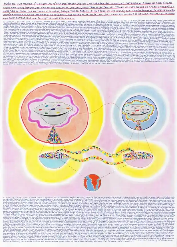 Sí hijito; es así; tal como lo sabías desde niño; todo el que vió groserías, escritas por otros, tienen el derecho de acusarlo delante del Padre; muchos en este mundo, se corrompieron, imitando a otros; por los ojos entra el pecado; por culpa de los groseros é inmorales, muchos están fuera del Reino de los Cielos; el mundo conocerá a todos los groseros que escribieron groserías en las paredes del mundo; ninguno de estos demonios de la inmoralidad, será resucitado en carne nueva, el año 2001; llorar y crujír de dientes tendrán los inmorales del mundo; como igualmente, nó serán resucitados a niño de doce años, los que viendo primero los Rollos del Cordero de Dios, no cambiaron de vida en lo moral; porque tales ciegos en lo espíritual, pidieron ser los primeros ante el Padre; estos ciegos, de la grandeza del Padre, perdieron la oportunidad, de ser los elegidos del Padre; porque tal era la divina intención del Padre; el Padre en su divino libre albedrío, escoge a hijos que viven la más elevada moral, que la mente pueda imaginar; el divino Padre, no escoge a los acomplejados en sus vanidades; he aquí que ningún afeminado entrará al Reino de losCielos; tal extraña influencia, es una forma de inmoralidad delante del Padre; todo afeminado y vanidoso, es producto de lo más decadente, salido del extraño sistema de vida del oro; es la degeneración, del propio esfuerzo prometido al Padre; ninguno de los que conocieron las llamadas modas, del extraño sistema de vida del oro, ninguno volverá a entrar al Reino de los Cielos; de verdad os digo, que ningún influenciado por la psicología de la bestia, volverá a ver la gloria del Padre; la oportunidadse les presentará, cuando vuelvan a pedir al Padre Jehova, nueva forma de vida; nuevo nacer de nuevo; en esto consistió la prueba de la vida; prueba, pedida por cada uno de vosotros; en el dibujo celeste, se ven lasideas de colores, que son juzjadas por las divinas balanzas solares de fuego; las ideas ván de una balanza a otra balanza; porque entre ellas, en virtud de sus libres albedríos de ideas, hacen alianzas; se complementan en las materializaciones, de futuras vidas; tal como entre los hombres sehacen acuerdos y alianzas; lo de arriba es igual a lo de abajo; las ideas son de colores, porque por los ojos, entró el color; y todo suceso y todo acontecimiento vivido en la prueba de la vida, está reproducido en las ideas; es así que todo divino juicio, en presencia del divino Padre, se hace estando presente todas las ideas, que el espíritu generó en el lejano planeta; es una réplica exacta y perfecta, de lo que se fué, en un determinado mundo; las escenas contenidas en las ideas, adquieren vida propia; y cada idea se comporta como un televisor de colores; lo de arriba es igual a lo de abajo; cuando los espíritus se ven a sí mismos, se llenan de espanto; porque ven que las ideas generadas en la prueba de la vida, son de una psicología desconocida en el Reino de los Cielos; ven con pavor, que sus propias ideas, fueron influenciadas por la extraña psicología del oro; ven y sienten, que por sus obras vivientes, no pueden pertenecer al Reino de los Cielos; sienten que son mirados como desconocidos; tal como se fué en la Tierra; la extraña psicología del oro, creó entre sus propios semejantes, al desconocido; muchos fueron tratados como tales; cuando el espíritu experimenta estos estados psicológicos, la ira y la rabia se apoderan de ellos; ira, por las extrañas costumbres que heredó de sus padres; rabia por aquellos que lo obligaron a vivir por la fuerza, en un extraño sistema de vida; desconocido en el Reino de los Cielos; y muchos hasta maldicen a sus padres y a todos los que tuvieron que ver, con su conducta, en el lejano planeta; he aquí una cortísima descripción de lo que experimenta un espíritu, que pide justicia al Padre; porque para hacer uso del derecho universal, de pedir justicia al Padre, primero se empieza por sí mismo; se empieza por los divinos mandatos del Padre, hechos imágen y semejanza en sí mismo; primero está lo de Dios; en todas las formas imaginables; el último es el espíritu; porque a todo espíritu se le mandó ser humilde por sobre todas las cosas; y no obstante, todo espíritu disfrutó de un libre albedrío, en que había muchas sensaciones; entre ellas la humildad; todo espíritu que escribió groserías en las paredes del mundo, se llenará de pavor, cuando ellos mismos, se vean escribiendo en las paredes del mundo; la desesperación se apodera de ellos; tratan de huir del lugar, en donde están sus propias ideas; he aquí que ninguno que trató de corromper a otro, escapará a su propio juicio; los groseros é inmorales, gritarán en público, sus ocultas inmoralidades; se golpearán el pecho; mientras que todo temblará a su alrededor; he aquí una ley solar; he aquí que la propia materia, obligará a todo demonio oculto en el libre albedrío de todo espíritu, a salir a la luz; y no habrá hecho oculto, que no sea proclamado delante de todos; todo violador de la ley, espantado vivirá; porque la materia viviente le perseguirá; en todo juicio del Padre, participa el todo sobre el todo; participa materia y espíritu; porque todos son iguales en derechos, delante del Padre; esta igualdad está escrita en el Reino de los Cielos; y es la misma igualdad pedida por todos los espíritus pensantes; más, el mundo en su prueba de la vida, no imitó al Reino de los Cielos; este error se fué transmitiendo de generación en generación; este error es la causa de todo llorar y crujir de dientes; este error salió de la era faraónica; y fué imitado por el pueblo de Israel; y tan extraña semilla, fué extendiéndose por el mundo; ni las nuevas naciones, escaparon a él; el error creó a la bestia.-