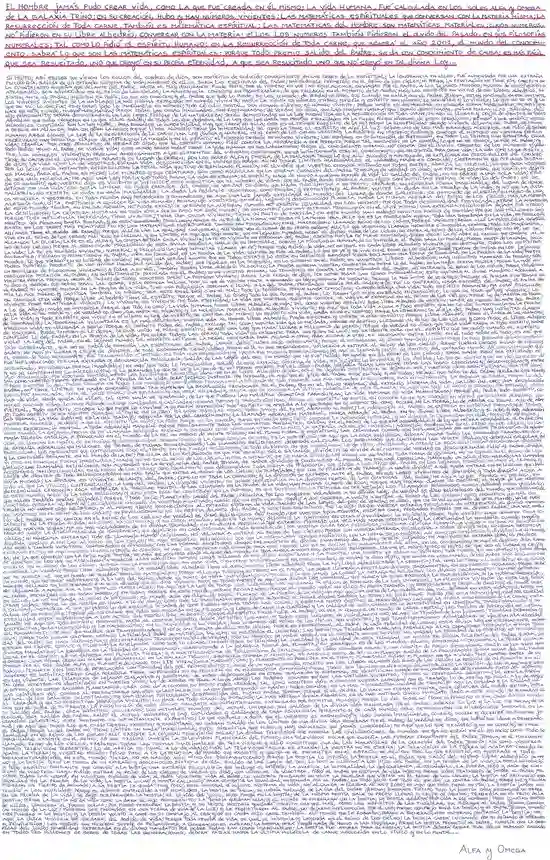 porque lo de arriba es igual a lo de abajo; nada es imposible para el que todo lo creó; la vida humana posee libre albedrío de vida; tal como vuestro espíritu posee libre albedrío de espíritu; nadie es menos delante del Padre; ni la vida ni el espíritu; de verdad os digo, que hasta el microbio y la molécula poseen libre albedrío viviente; he aquí que toda vida acusa a todo espíritu, que no le dió importancia en la prueba de la vida; y todo espíritu que violó en sí mismo su ley de espíritu, se castiga así mismo; un espíritu sin vida, nada es en el cosmos; porque la ignorancia aleja del Padre; hay infinitas clases de ignorancia; la ignorancia voluntaria es la más dolorosa; vuestra vida al poseer libre albedrío, puede escoger y unirse a otro espíritu; porque libre albedrío posee el arca de las alianzas; ninguna vida es obligada a serlo; porque el infinito poder del Padre, excluye tal cosa; vuestra vida que os fué dada, escoge su destino, llegado al Reino de los Cielos; y como posee el libre albedrío de escoger, puede también si lo desea, seguir unido al mismo espíritu; he aquí una ley que hará llorar a millones de seres; porque de verdad os digo, que toda vida exige a todo espíritu, haber cumplido lo del Padre, en la prueba de la vida, por sobre todas las cosas; toda vida es exigente para con quien se unió; es exigente para con el espíritu que se unió; cuando el espíritu violó la ley del Padre, en el lejano mundo, tal espíritu nó tiene la moral necesaria para acusar a otro; para acusar a otro, es necesario estar limpio en el todo sobre el todo; es así que todo gobernante, que no se sabía de memoria las escrituras del Padre, jamás debió haber sido gobernante; porque el nó saberse el divino mandato, constituye la más grande de las inmoralidades; he aquí un llorar y crujír de dientes, de todo gobernante ciego; ciegos porque ni él ni sus seguidores, volverán a entrar al Reino de los Cielos; porque fueron ciegos guías de ciegos; el error de todo gobernante, fué trasmitido é imitado por toda una generación; y hasta por muchas generaciones; he aquí el llorar y crujír de dientes, del extraño mundo del oro; un mundo que fué influenciado por una extraña y desconocida psicología, salida de las leyes del oro; un mundo que no fué pedido por nadie en el Reino de los Cielos; porque nadie pidió ser explotado ni engañado, en ninguna forma imaginable; he aquí que todo lo imaginable, salido de este extraño sistema de vida, es juzjado; lo invisible y lo visible; lo que se sintió y nó se vió; lo que se vió y nó se comprendió; lo microscópico y lo grande; lo que se vé y lo que no se vé; porque escrito fué: El Dios-Padre juzjaría todas las cosas; todas las cosas conocidas y desconocidas; y entre lo desconocido, por vosotros sentido, están las invisibles ideas; las ideas que en su libre albedrío de idea, sólo se dejaron sentir; y no se dejaron ver; vuestras ideas serán juzjadas, idea por idea; tal como vuestro tiempo empleado en la prueba de la vida, será juzjado instante por instante; he aquí que el juicio del Padre está en todo y en todos; he aquí que sólo lo del Padre queda en este mundo; porque siempre lo del Padre triunfa en todos los mundos; si los hombres provocan en la búsqueda de todo progreso, las más grandes revoluciones, más infinitamente la provoca el Padre; porque lo del Padre, nó tiene límites en nada conocido; será tan inmensa la revolución provocada por el Padre, que ni el polvo quedará, del extraño sistema de vida, salido del oro; una revolución que os fué anunciada, como el juicio final; una revolución que será recordada, hasta que se extinga la última molécula de este planeta; he aquí que todo lo hecho y creado, por extraños sistemas de vida, nada queda de ellos; tal como nada vá quedando, de lo que fueron las malditas dinastías faraónicas; la vida humana es vida momentánea; porque al pedir todo espíritu, conocer nuevas vidas, lo hace pidiendo nuevas cualidades y calidades; nuevas formas y características; porque el espíritu no repite en conocer lo que ya conoció; en virtud de su libre albedrío espíritual, todo espíritu escoge lo que mejor le conviene a su propia perfección; todo espíritu se amolda a lo que puede en sí mismo; tal como ocurre en la Tierra; lo de arriba es igual a lo de abajo; todo espíritu desea siempre agradar al Padre que le creó, por sobre todas las cosas; todos salen del Reino, adorando al Padre; la adoración al Padre, se expresa en infinitas formas; y de todas las formas, la más sublime es la del trabajo; seguida por la del conocimiento; la llamada adoración material, nunca agradó al Padre, en su divino libre albedrío; y si hubo y hay adoración material conocida, se debió a que el espíritu la pidió; la pidió porque no la conocía; que se entienda bién; pidió conocer la adoración material, y nó dejarse influenciar por ella; prometió al Padre, oponer resistencia mental a toda adoración material; porque precisamente todos los espíritus pensantes, sabían en el Reino, de lo que era agradable y de lo que nó era agradable al Padre; en este mundo, la extraña forma de fé llamada religión, enseñó y propagó como ninguna otra fé lo hizo, la extraña adoración material; adoración desconocida en el Reino de los Cielos; la llamada iglesia católica, a provocado en el mundo de la fé, un atraso de veinte siglos; en el plano moral y espíritual; las criaturas cuando son influenciadas por extrañas psicologías de adoración, se llenan la mente de extrañas y desconocidas sensaciones; y la consecuencia de esto, es la superstición; he aquí que la roca religiosa, deberá pagar todos los segundos transcurridos, de extraña adoración en millones de seres, de muchas generaciones; los llamados religiosos deberán calcular los segundos que contienen los veinte siglos; y deberán calcular en particular, los segundos que contuvieron todo el tiempo en que fuer