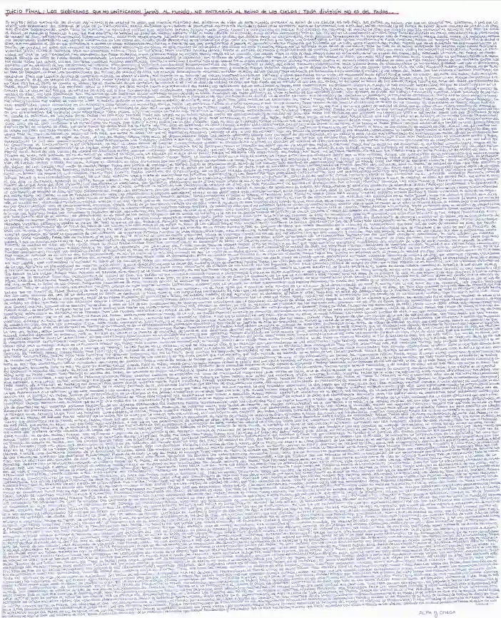 una sorpresa que es toda una verguenza; hasta los elegidos para ser los primeros, desprecian la Revelación; haciendo lo opuesto prometido al Padre; de verdad os digo, que cada segundo de desprecio transcurrido, a los que pidieron ser los primeros en recibir la Revelación, es una exsistencia que debe cumplirse fuera del Reino de los Cielos; más les valdría a estos espíritus no haberla pedido; porque no tendrían en sus conciencias, tal deuda delante del Padre; toda promesa hecha en el Reino, se transforma en una forma de vida en lejanos planetas; todo se materializa; todo se vuelve sal de vida; ó conocimiento que es lo mismo; el conocimiento aprendido brilla físicamente; como brilla una sal ante los rayos solares; todo lo aprendido no solo en la actual vida, sino que en todas las que habéis tenido; brillo tras brillo a lo largo de la eternidad espíritual; hasta llegar a ser un brillante sol primogénito; primero es sabiduría; en un grado tal, hasta donde vuestra mente pueda imaginar; porque el mérito del conocimiento conquistado, dura por toda la eternidad; la maldad es aplastada por el conocimiento; la luz penetra las tinieblas; el amor del Padre que es la suprema luz, todo lo vence; triunfa en todos los mundos; de verdad os digo, que cada uno se hace su propia luz; porque cada uno es responsable de sus actos; esto corresponde a la divina parábola: Cada uno se hace su propio cielo; porque todo cielo nace del conocimiento de cada uno; todo cielo nació de una idea, que experimentó el sudor de frente; toda idea que se genera, es un futuro planeta; todos los mundos nacen microscópicos; son al principio ideas; nacen de lo invisible a lo visible; vosotros no véis vuestras ideas; a pesar que vosotros las creáis; ni nadie las niega; negar sus propias ideas, es negar la eternidad; las ideas al igual que el espíritu, poseen libre albedrío; tienen la herencia del Padre; y las ideas acusan a todo espíritu que las niega; de verdad os digo, que todo creador de ideas, visita en la eternidad del tiempo, su semilla galáctica; visita a sus propias ideas, que se están transformando en colosales planetas; he aquí una Revelación que estremecerá al mundo; porque los que generaron ideas malas, crearon colosales mundos-infiernos; y los que generaron ideas buenas, crearon sus futuros paraísos; he aquí vuestro futuro cielo; salido de vosotros mismos; cielos y planetas microscópicos; galáxias del polvo; de verdad os digo, que todo lo inmensamente colosal, fué microscópico; fué polvo; y quien no naciere pequeñito, no vé el Reino del Padre; el tener un principio microscópico, es ley universal; porque todos en el universo tienen los mismos derechos delante del Padre; hasta el mismo macrocosmo, fué chiquitito; vivió en edades solares que ya no están; en mundos colosales que ya han desaparecido; porque los universos se suceden, tal como se suceden las criaturas y las generaciones; de verdad os digo, que la nueva ciencia que viene a este mundo, es una ciencia, que estáis lejos de imaginar; porque no será materialista; nuevos poderes de la mente, os enseñará el Hijo Primogénito; la verguenza más grande os experimentaréis, vosotros los orgullosos de una ciencia que se creyó única; la llegada delHijo Primogénito, apocará a toda gloria terrenal; porque él es de jerarquía solar; escrito fué: Y llegará brillante como un sol de sabiduría; el conocimiento brilla; y más brilla el conocimiento venido de los soles; le conoceréis porque tendrá su rostro un brillo físico; un brillo que maravillará al mundo; y espantará a los demonios; empezando por los que os dieron un vergonzoso sistema de vida; por los que os dividieron; por los que os explotaron; por los que os engañaron; por los que escandalizaron; por los que exhibieron sus cuerpos; por los que se mofaron de la moral del Padre; de verdad os digo, que por estos demonios, comienza el llorar y crujir de dientes; he aquí a satanás; he aquí al mal hecho muchas formas; he aquí al demonio, que nunca os atrevísteis a aplastar; el demonio os aplastó a vosotros; porque el tiempo se cumplió y el juicio final, os encuentra divididos; y de verdad os digo, que ningún espíritu que fué dividido, entrará al Reino de los Cielos; acusados seréis en el Reino del Padre, de no haber luchado contra el demonio, con todas vuestras fuerzas; porque así lo prometísteis en el Reino de los Cielos;prometísteis, no dejaros sorprender por el demonio; como fueron sorprendidos y engañados, Adán y Eva; de verdad os digo, que si hubiéseis dado mayor y primera importancia a las Escrituras y Mandamientos del Padre, no tendríais que sufrir las consecuencias; no tendríais llorar y crujir de dientes; no tendríais ni juicio final; todo está consumado en vuestra prueba de vida; sólo os queda el arrepentimiento una vez más; porque en otros mundos os ocurrió lo mismo; porque todo espíritu nace de nuevo; en nuevas exsistencias y en nuevos mundos; de verdad os digo, que por culpa del llamado capitalismo y por las llamadas religiones, ninguna criatura humana entrará al Reino de los Cielos; los demonios del oro, os dividieron en ricos y pobres; y los demonios de la roca del egoísmo humano, os dividieron en muchas creencias, habiendo un sólo Dios nomás; he aquí la tragedia del llorar y crujir de dientes; he aquí a los culpables; todo espíritu dividido, no entra al Reino de los Cielos; porque nadie pidió dividir a nadie; en lo más mínimo; de verdad os digo, que todo culpable de división, castigado será; satanás se divide así mismo; el fruto de toda división, es el castigo para el demonio; porque con la misma vara que midió, será medido; el llamado mundo cristiano, entrará en revolución; porque seguir sirviendo al demonio, es perpetuar la división del espíritu; y perpetuar el alejamiento del Reino de los Cielos; cada segundo de violación, que transcurre, es una exsistencia más que os aleja de la morada del Padre; de verda