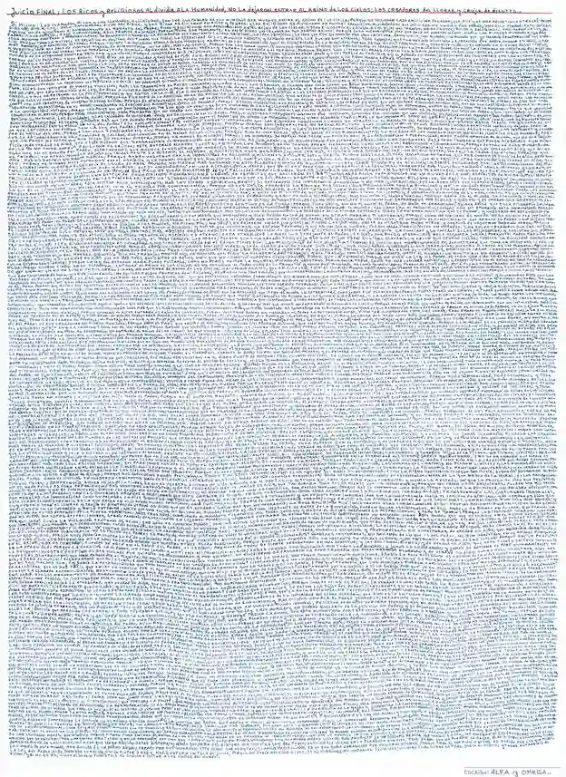 Sí Hijito; los llamados ricos y los llamados religiosos, son los culpables de que ningún ser humano entre al reino de los cielos; porque no hicieron caso a mi divina palabra; que fué y es una divina advertencia a través de los siglos; dice mi ley: sólo satanás se divide a si mismo; y los ricos os dividieron en ricos y pobres; y los religiosos os dividieron en muchas creencias; olvidándose que sólo exsiste un sólo Dios nomás; una sola verdad; esto sucedió, porque no se ajustaron rigurosamente al mandato del Padre;ricos y religiosos son desconocidos en el reino de los cielos; y toda filosofía que divida a los hijos del Creador, no se conoce; ricos y religiosos amoldaron la ley del Padre a sus antojos; a sus comodidades; a sus comodidades; a sus propios reinados; porque todo ser pensante, es en sí mismo un creador de sus propios reinos; porque de la microscópica idea que sale de vuestra mente, nacen los futuros mundos; y cuando esos mundos empiezan a desarrollarse, se desarrolla también la filosofía que contenía la idea original; la idea primitiva; la idea que fué generada por una criatura, desde un lejano mundo; un mundo que ya habría desaparecido del espacio; porque toda la materia es relativa al destino del tiempo que pidió; la eternidad de los mundos exsiste; y también exsiste los que no son eternos; todo exsiste; y es tan variada é infinita la creación, que basta pensar en algo, y ese algo exsiste; y a exsistido siempre; porque exsiste la sucesión eterna de las ideas; que es decir, de los mundos; he aquí el significado de la humildad; porque os fué dicho: todo humilde y todo microscópico, es grande en el Reino de los Cielos; y vuestra idea que sale de vosotros mismos, es microscópica; no la véis; más la sentís; porque por las ideas cumplís vuestro destino; y todos sóis productores de ideas; he aquí la semilla del Padre; he aquí la eternidad de vuestras filosofías; he aquí la causa universal de la parábola: todo humilde es grande en el Reino; esta ley es para la materia y el espíritu; porque ambas son vivientes; ambas tienen los mismos derechos; todos son iguales ante el que los creó; los mundos de la eternidad conocen esta ley y la viven; porque conversan sus criaturas con los elementos; tal como conversaban Adán y Eva; porque de todo hay en el rebaño del Padre; si vosotros no conversáis con los elementos, es porque así lo pedísteis en el Reino; toda vida, en su cualidad y calidad, se pide en el Reino; así a sido siempre; se pide vivir en un lejano mundo y se piden hasta lo más mínimo que contiene dicha vida; y se pide un nuevo concepto del Creador; porque se os enseñó que vuestro Dios está en todas partes; está también en todo concepto; y pedísteis los Mandamientos; y las escrituras; lo que no pedísteis, fué no ser dividido; porque se os enseñó que no se puede servir a dos señores; las escrituras son una sola;