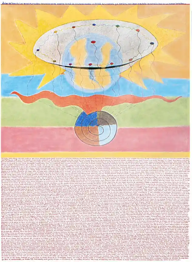 Sí hijito; este dibujo celeste explica que en el infinito, donde jamás llegará la criatura humana, ocurren hechos abísmantes; no teniendo límite mi creación, todo exsiste en ella; desde lo microscópico hasta lo infinitamente grande; esto último, es algo que está vedado a todo mundo entre sí; los colosales mundos, son del Reino de los Cielos; hay que nacer de nuevo, en infinitos mundos microscópicos, para llegar a un mundo grande; la Tierra pertenece a los mundos microscópicos; ó mundos polvos; más, la Tierra es a la vez, un gigante, frente a otros mundos polvos; todo depende de la dimensión, en que se viva; lo colosal, no sospecha que es colosal; como lo microscópico tampoco; esta sensación, se llama en el Reino de los Cielos, sensación transitoria; pues la eternidad, hace volver a todos, a la realidad; algunas mentes, tratan de captar, lo que no está, a su alcance habitual; esto se denomina inspiración reconocida; que no es más que un débil desprendimiento, del lugar de donde vino el espíritu; una ley interna y muy poco estudiada, hace que la intención del espíritu, trate de penetrar en forma indirecta, el universo materia-espíritu; a cada espíritu, se le puso un olvido momentáneo, en lo que se refiere a todo su pasado; por lo tanto, cada espíritu ha vivido muchos presentes y muchos pasados; todos han terminado, junto con la mente del cuerpo de carne; por lo tanto; un espíritu ha tenido, muchos cuerpos; ha vivido muchas veces; en distintos destinos; ha tenido muchos padres terrenales; y sigue siendo un mismo espíritu; escrito fue: Hay que nacer de nuevo, para ver los mundos colosales, del Reino de los Cielos; esto significa que muy pronto en la Tierra, habrá una sola filosofía; de acuerdo a esta nueva revelación; esta filosofía la encabezará, el Cordero de Dios; se acabarán, los llamados sentimentalismos; producto espíritual, de incertidumbre y de falsos conceptos del amor; sólo el amor hacia el divino Padre, es lo eterno; quien llore a su propio Creador, ese es recibido con amor, en el Reino de los Cielos; sólo debe haber respeto por los que fueron, nuestros compañeros, en una efímera vida; el llorar a los muertos, es cosa de ciegos; dejad que los muertos entierren a los muertos; así fue escrito muchos siglos atrás; y significa que la ignorancia, llore a la ignorancia; pues todo adulto que ha vivido hasta ahora en el mundo, jamás ha ceñido su modo de vivir, de acuerdo a mis divinos mandatos; casi todos, han comido carne, a su propio hermano se comió; los tales, no entrarán jamás en el Reino de los Cielos; y todos aquéllos, que han comido alimentación, en que hubo derrame de sangre; esta costumbre de comerse unos a otros, fue válida n remotos tiempos de la Tierra; esas criaturas pidieron vivir esa filosofía; nada tiene el divino Padre, contra ellos; ni en sus formas de vivir, de subsistir y de vestir; ellos cumplieron con su propia ley, pedida en el Reino de los Cielos; y en sus costumbres, la crearon según sus necesidades; allí no había vicio; había adaptación al medio desconocido; espiritualmente eran ángeles, ante una filosofía de vida  desconocida; esa fue la prueba de la vida, pedida por ellos, en el Reinode los Cielos; ¡qué diferencia entre estas criaturas, y las actuales del mundo Tierra! ¡cómo maldecirán las llamadas modas! porque toda moda, es una forma relativa de escándalo; y todo escándalo es del mundo; estas criaturas, son llamadas mundanas en el Reino de los Cielos; pues vienen de microscópicos planetas de pruebas; todo escandaloso, no entra en el Reino de los Cielos; como igualmente los llamados ricos del mundo; pues la riqueza no es sabiduría; no es conocimiento; y como tal, no es árbol, plantado por el divino Padre Jehova; y de raíz es arrancada, en el Milenio de Paz; la riqueza también es mundana; y es, la máxima expresión de la soberbia humana; ella es y ha sido, el peor azote, que han conocido los espíritus humanos, por su paso por la Tierra; y aún constituye la tragedia de millones de hijos; toda riqueza lograda por explotación de sus propios hermanos, no entrará jamás en el Reino de los Cielos; el divino Padre, no maldice la riqueza; pues hay muchas clases de riquezas; más, aquélla riqueza que ha creado, a ricos y pobres, maldita es; y no quedará nada de ella en la Tierra; la Tierra y sus criaturas ambiciosas pasarán; más mis divinas palabras no pasarán; de esta maldita filosofía, saldrá otra; más justa; más digna; más fiel a mis divinos mandatos el nuevo mundo que se inicia el año 2001, es el mundo que debió surgir hace muchos siglos atrás; en mi divino plan, no estaba incluído el uso del oro; mis divinas leyes enseñaban y aún enseñan, el gobierno patriarcal; un sólo mundo; un sólo rebaño; un sólo destino; una sola forma de vivir; satanás, reencarnado en el dinero, dividió al mundo; naciones ricas y naciones pobres; todo enriquecido, ya ha obtenido en la Tierra, su propia recompensa; que nada espere del cielo; ellos adoraron al César; adoraron el oro; que el César, los resucite en carne; pues han despreciado al divino Cordero de Dios; que es contrario, a todo engrandecimiento; que sólo dura un suspiro frente a la eternidad; que dá el conocimiento de todo humilde trabajo a todo espíritu; jamás rico alguno, se ha llevado un centavo, al Reino de los Cielos; la Tierra y sus hijos, será juzjada según las intenciones; según el grado en que cumplió con los divinos Mandamientos; pues ellos, son los únicos que dan vida eterna; nadie será juzjado por concepciones salidas de demonios; todo demonio que haya alejado a mis hijos, de la verdad, maldecido es; las llamadas religiones, son desconocidas en el Reino de los Cielos; son los árboles, que no plantó el divino Padre Jehova; y de raíz son arrancados, de la evolución humana; las religiones, son las primeras que han violado, mis Sagradas Escrituras; por algo, e
