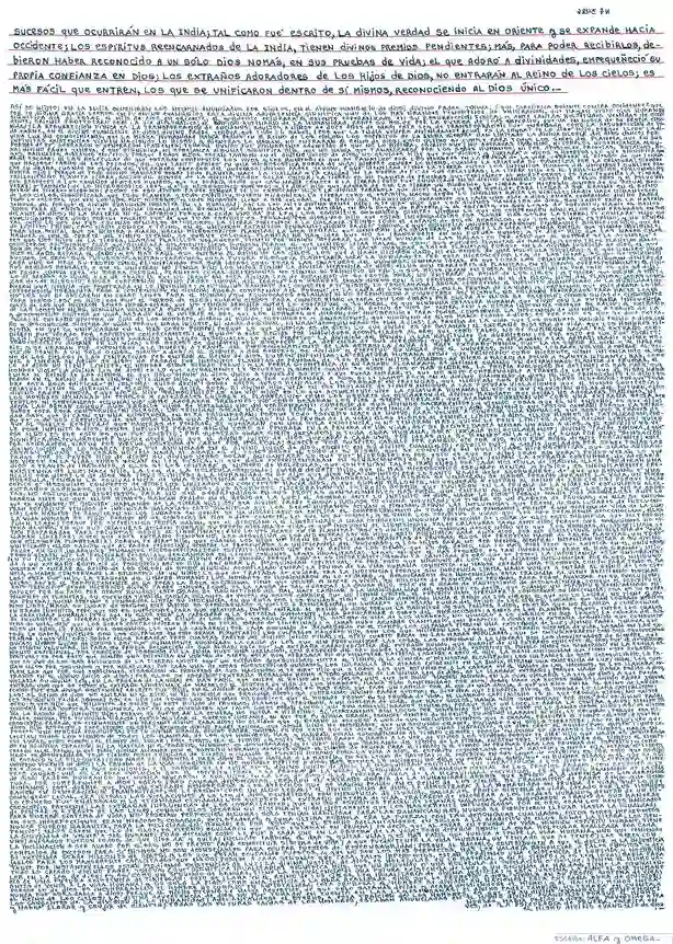 Así es hijito; en la India ocurrirán los hechos anunciados por siglos, en el divino Evangelio de Dios; Divino Padre Jehova, ¿qué significa Oriente contra Occidente? que por tu divina gracia leemos en tu divino Evangelio; Esta divina advertencia significa uno de los más grandes fenómenos de emigración, que hayan visto ojos humanos; significa que al estar el Hijo de Dios en Oriente, el Occidente emigrará al Oriente esperanzado en su resurrección física; y ante tantas multitudes venidas de Occidente, Oriente protestará por la vía diplomática; el edificio rutinario de la humanidad, rompe su molde por la fuerza de todo espíritu, que vá en busca de su propia eternidad; la resurrección física es la transformación de ancianos, adultos, a niños de doce años de edad; esta ley de transformación fué enseñada como la resurrección de toda carne, en el divino Evangelio de Dios; Divino Padre Jehova, que todo lo sabes, ¿por qué la India venera divinidades? ¿cuál es la causa? Te lo diré hijo, porque llegó la divina luz del conocimiento, que la misma humanidad había pedido en el Reino de los Cielos; los espíritus de la India siempre han limitado la divina gloria del Dios único; por infinitas existencias vienen haciendo lo mismo; y mientras lo hagan, no entrarán al Reino de Dios; esto último se cumple para todos los seres del planeta que en sus formas de fé, adoraron ó veneraron imágenes; todo el mundo fué divinamente advertido de que no lo hiciera; escrito fué: No adorarás imágenes, ni templos ni semejanza alguna; Divino Padre Jehova, ¿qué significa, ni semejanza alguna? Significa hijo, que no había que fanatizarse por los seres humanos; ni por apóstoles, profetas, estatuas, reyes, magnates, sultanes etc. etc.; porque todos ellos están también en el divino juicio de Dios; no olvides hijo que fué dicho: Y juzjará a vivos y muertos; lo que significa que nadie escapa; ni las moléculas de que estaban compuestos los vivos y los muertos; el que se fanatizó por los hombres en la prueba de la vida, correrá el riesgo de que tenga que hacerse cargo de los pecados, del que tanto admiró en una microscópica forma de vida; siempre ocurre lo mismo, cuando la criatura se fanatiza por la criatura; siempre cae en drama, cuando se olvida del verdadero Creador del universo; Divino Padre Jehova, ¿qué identidad tiene la Tierra entre los infinitos mundos del universo? Sublime pregunta hijo; porque de todo divino mandato sobre todo planeta, nace la cualidad y la calidad de la forma de fé de sus criaturas; la Tierra hijo es el trillonésimo, trillonésimo, trillonésimo planeta Tierra, salido del vientre de la divina Madre Solar Omega; la Tierra es un planeta de pruebas que pertenece al microcosmos; es tan pequeña la Tierra, con respecto a los tamaños de otros mundos, que se podría decir que casi nadie conoce a la Tierra; esto fué anunciado en mi divino Evangelio como: Del polvo eres y al polvo volverás; ó también: De lo microscópico eres, y a lo microscópico vuelves; y te diré hijo que además de ser la Tierra un microbio, la Tierra fué microbio dentro de su actual geometría de Tierra-microbio; ¿Cómo es eso divino Padre Jehova? Te lo explicaré hijo: La divina parábola que dice: Hay que ser humilde, para llegar a ser grande en el Reino de los Cielos, significaba que todo planeta y todo espíritu, fueron microbios; la Tierra como el espíritu, nacen desde lo invisible hacia lo visible; nadie nace gigantesco; todo lo colosal que ven los ojos, fué microbio; y todo microbio llega a ser colosal, por medio del magnetismo expansivo que cada uno pide a Dios; Ahora comprendo divino Padre Jehova, del porqué el divino Evangelio insistía en la humildad; Así lo leo en tu divina mente hijo; y te diré hijo que los divinos mandatos de Dios, son tanto para la materia como para el espíritu; es la divina igualdad del Eterno; Dios hace hablar a la materia, en sus leyes de materia; y al espíritu, en sus leyes de espíritu; nadie es menos delante de Dios; ni la materia ni el espíritu; porque a cada uno dá su ley; los espíritus soberbios siempre niegan lo que no comprenden aún; ellos son probados en sus evoluciones por Dios; porque escrito fué de que todo espíritu es probado por Dios; veo hijo que estás interesadísimo por saber más sobre la Tierra; te contaré hijo que tal como lo ves en tus escenas mentales de colores, la Tierra pertenece a la galaxia Trino; todo el espacio de soles amarillos, que los ojos ven, es Trino; y no teniendo límites Trino, casi nadie conoce a Trino, en el universo expansivo pensante; Divino Padre Jehova, ¿qué significa Universo Expansivo Pensante? Significa hijo, que de toda idea mental que se genera a diario, nacen microscópicos planetas; la idea mental que generan las criaturas, no muere; la idea es onda Omega que siendo invisible, madura y con el correr del tiempo eterno, se vuelve colosal planeta; no hay idea que no se transforme en un futuro mundo; y te diré hijo que las naves celestes que los hijos de la Tierra, llaman platillos voladores, tienen por misión separar las ideas buenas de las malas; es por esto que al hombre se le aconsejó a conocerse así mismo; para que generara solamente ideas buenas; porque el que generó ideas malas, se creó sus futuros planetas de maldad; y como tales planetas salieron de sus propias microscópicas ideas, el mismo espíritu tendrá que ir como un Cristo, a hacer avanzar a tales planetas; porque en la divina justicia de Dios, el que hizo el daño, repara el daño; y es más fácil que entren al Reino de los Cielos, los que a nadie hicieron daño, ni en menos de una molécula siquiera; y el que generó ideas buenas, se creó sus futuros planetas-paraísos, cuya futura filosofía planetaria será la bondad; es por esta microscópica ley de las ideas, es que se escribió: Cada uno se hace su propio cielo, principiando por sus ideas; como todas las criaturas del universo, generan