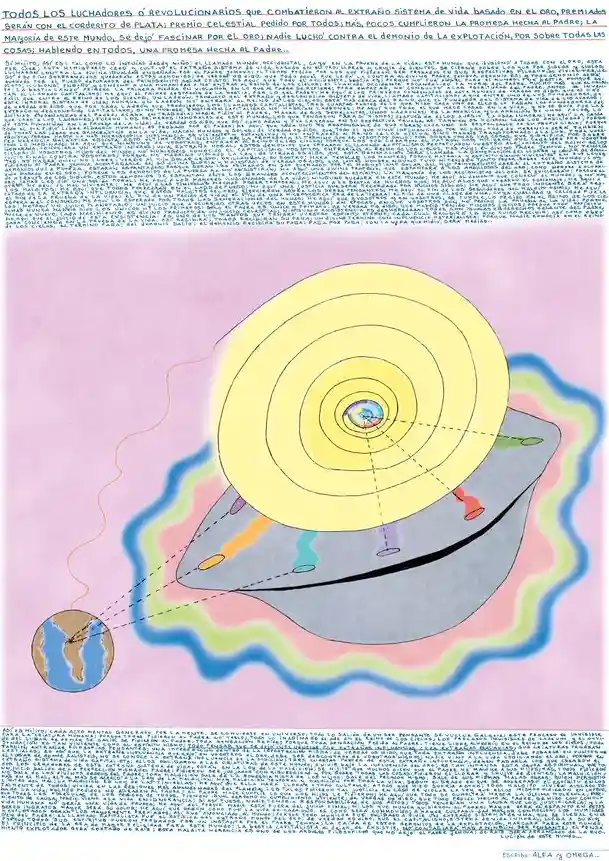 TÍTULO: TODOS LOS LUCHADORES O REVOLUCIONARIOS QUE COMBATIERON AL EXTRAÑO SISTEMA DE VIDA BASADO EN EL ORO, PREMIADOS SERÁN CON EL CORDERITO DE PLATA; PREMIO CELESTIAL PEDIDO POR TODOS; MÁS, POCOS CUMPLIERON LA PROMESA HECHA AL PADRE; LA MAYORÍA DE ESTE MUNDO, SE DEJÓ FASCINAR POR EL ORO; NADIE LUCHÓ CONTRA EL DEMONIO DE LA EXPLOTACIÓN, POR SOBRE TODAS LAS COSAS; HABIENDO EN TODOS, UNA PROMESA HECHA AL PADRE.-